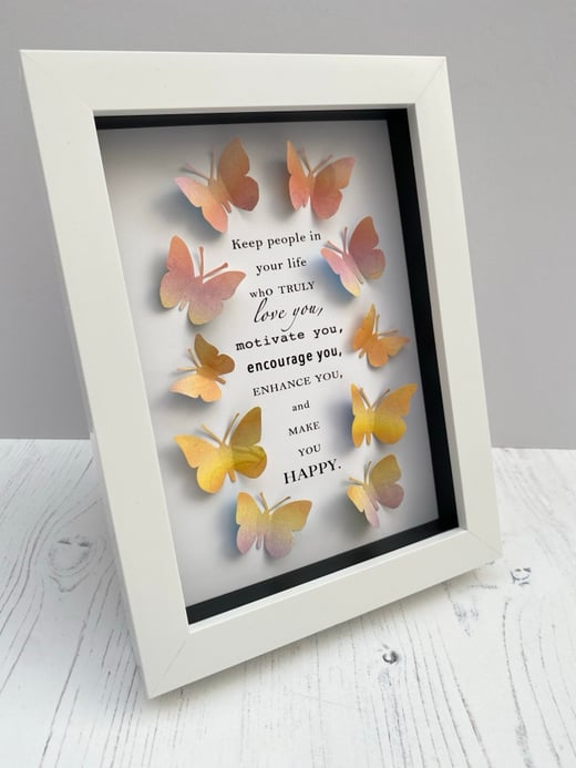 10 delicate butterflies hand cut from the pages of old children's books. Lifted from the background for a 3D finish.